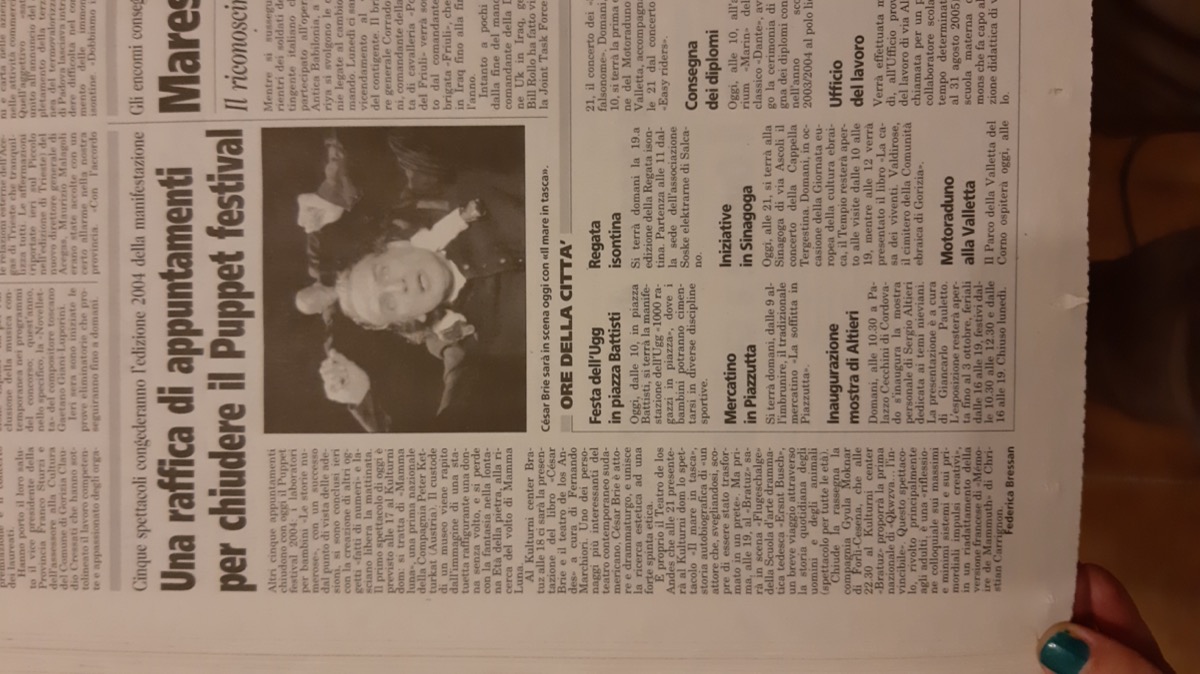 I worked for IL PICCOLO from 2003 to 2015. IL PICCOLO is a newspaper based in Trieste and it is owned by Gruppo Espresso. It has a circulation of approxiamtely 45k copies. I mostly covered cultural events, music, theatre, reviews, openings, international exchanges, folk festivals, events of archeological and naturalistic relevance.